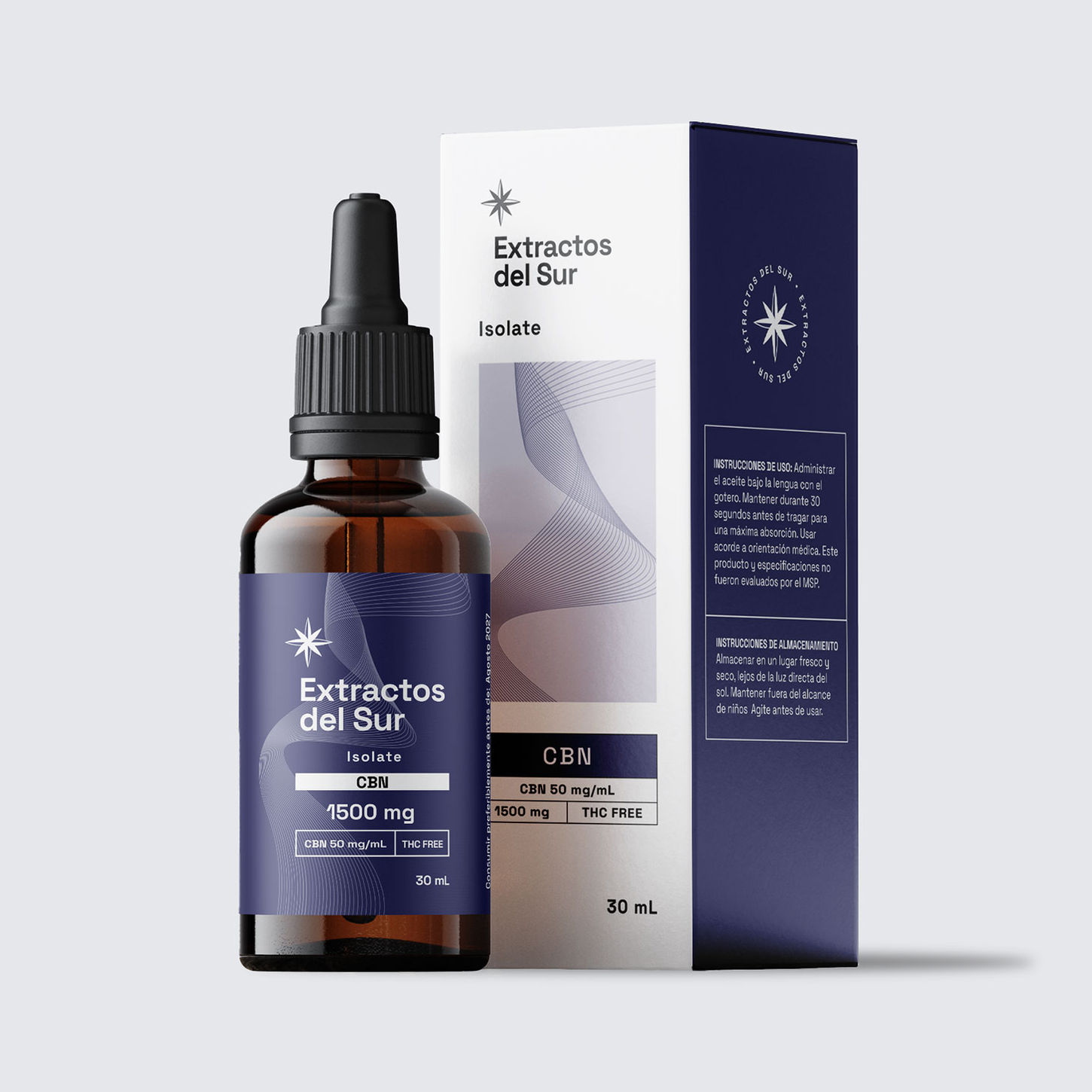 Aceite basado en aislado de cannabinol (CBN) con concentración de 50 mg/mL, sin presencia de THC. Presenta un perfil sensorial limpio, con color claro y sabor suave, resultado de una formulación enfocada en pureza y estabilidad.