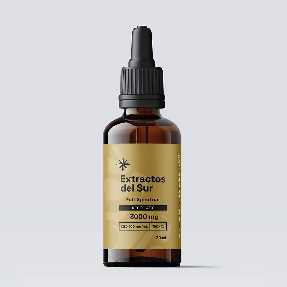 Aceite formulado exclusivamente con aislado de cannabidiol (CBD) de pureza superior al 99,5%, libre de THC. Disponible en concentraciones de 3000 mg, 6000 mg y 9000 mg por frasco (100 a 300 mg/mL de CBD).
